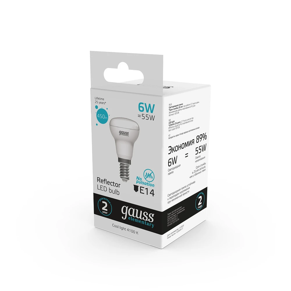 Светодиодная лампа Gauss Рефлекторная 6W 450Lm 4100K E14 63126