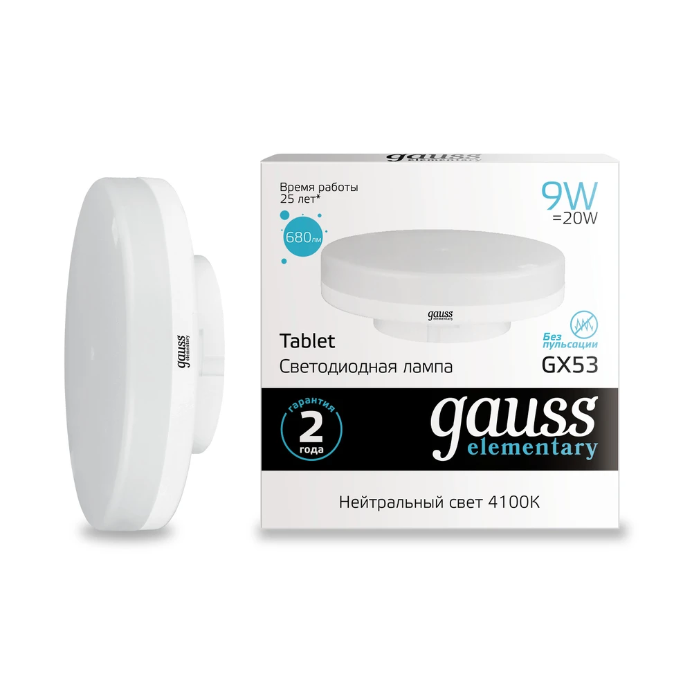 Светодиодная лампа Gauss ELEMENTARY 9W 680Lm 4100K GX53 83829