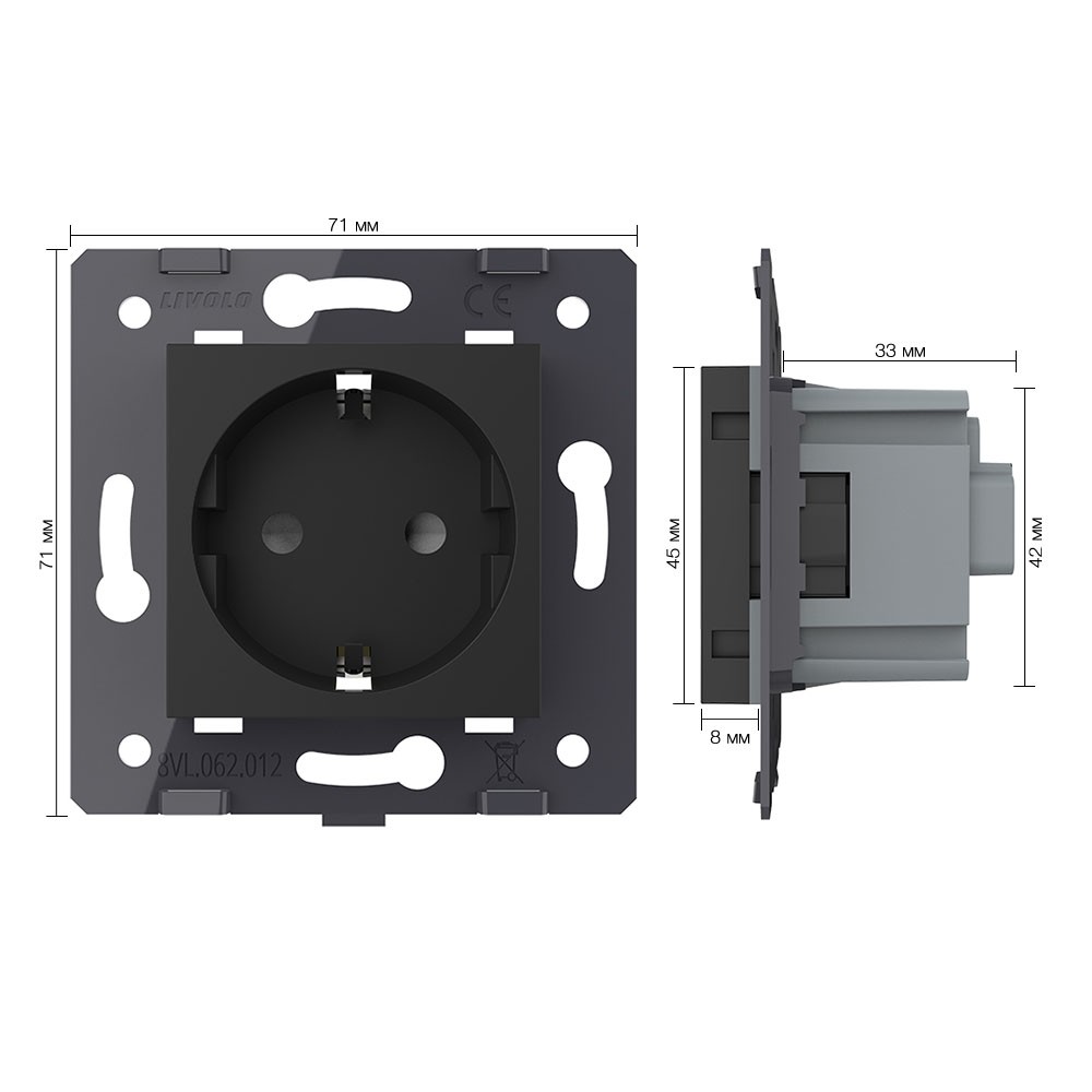Розетка с/з со шторками Livolo VL-C7-C1EU-12