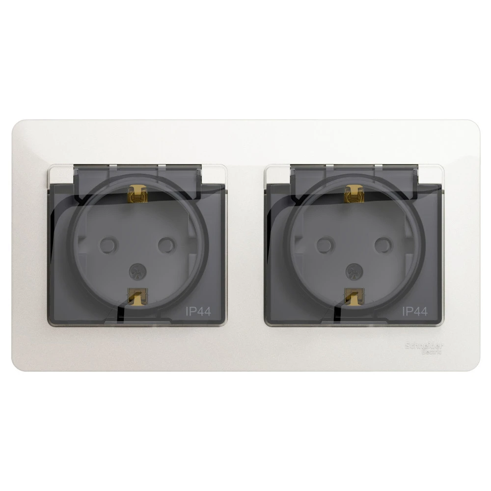 Розетка с/з со шторками и крышкой двойная IP44 Systeme Electric GLOSSA GSL000647