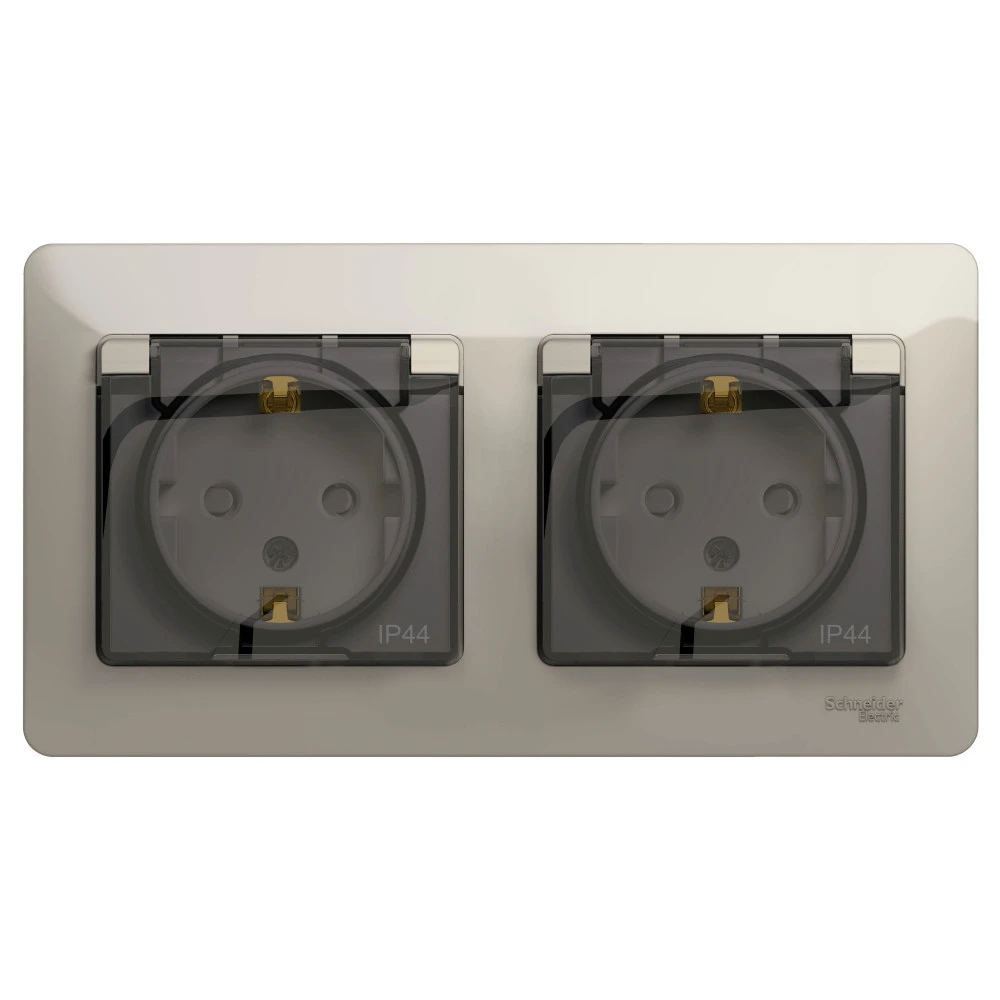 Розетка с/з со шторками и крышкой двойная IP44 Systeme Electric GLOSSA GSL000947
