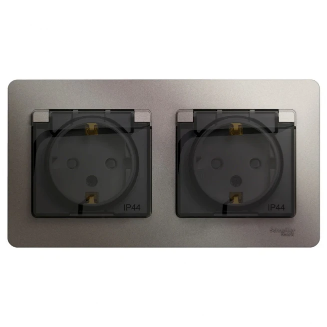 Розетка с/з со шторками и крышкой двойная IP44 Systeme Electric GLOSSA GSL001247