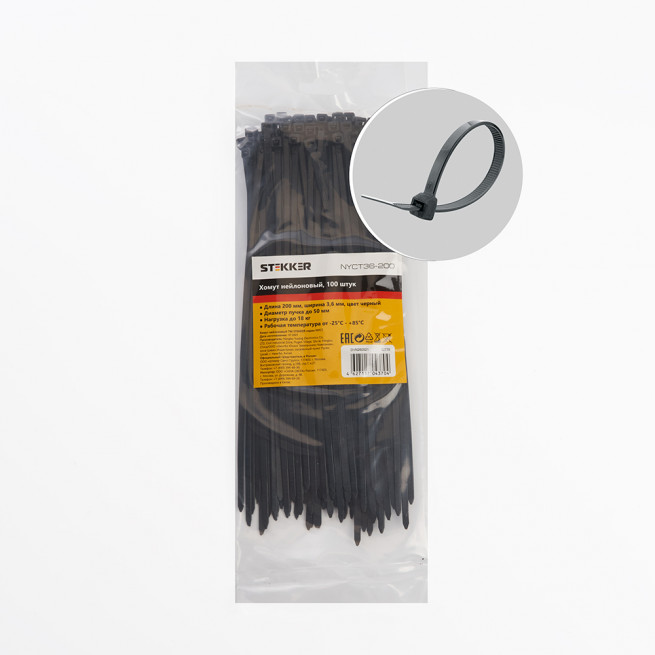 Хомут нейлоновый (100шт) Stekker NYCT36-200 32778