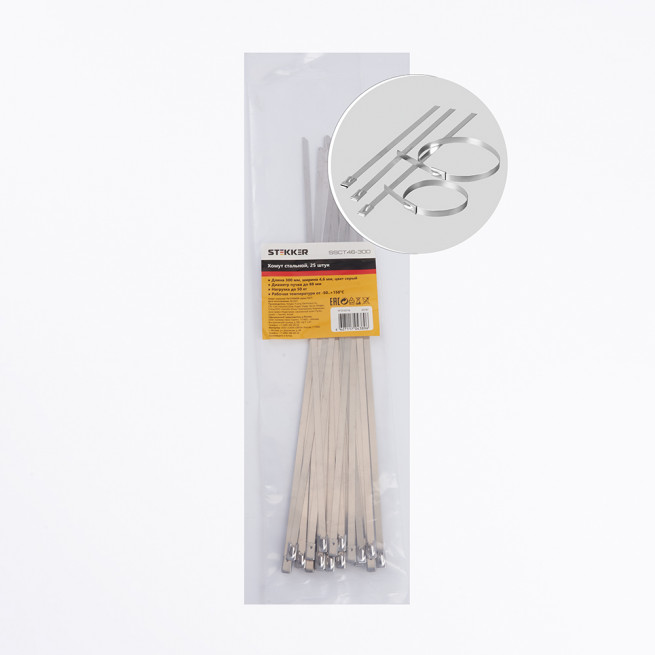 Хомут стальной (25шт) Stekker SSCT46-300 32797