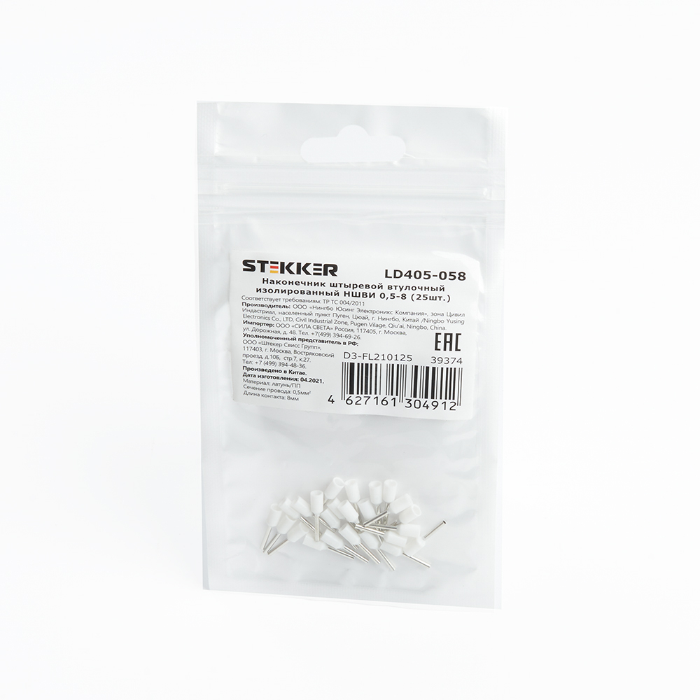 Наконечник штыревой втулочный изолированный (25шт) Stekker LD405-058 39374