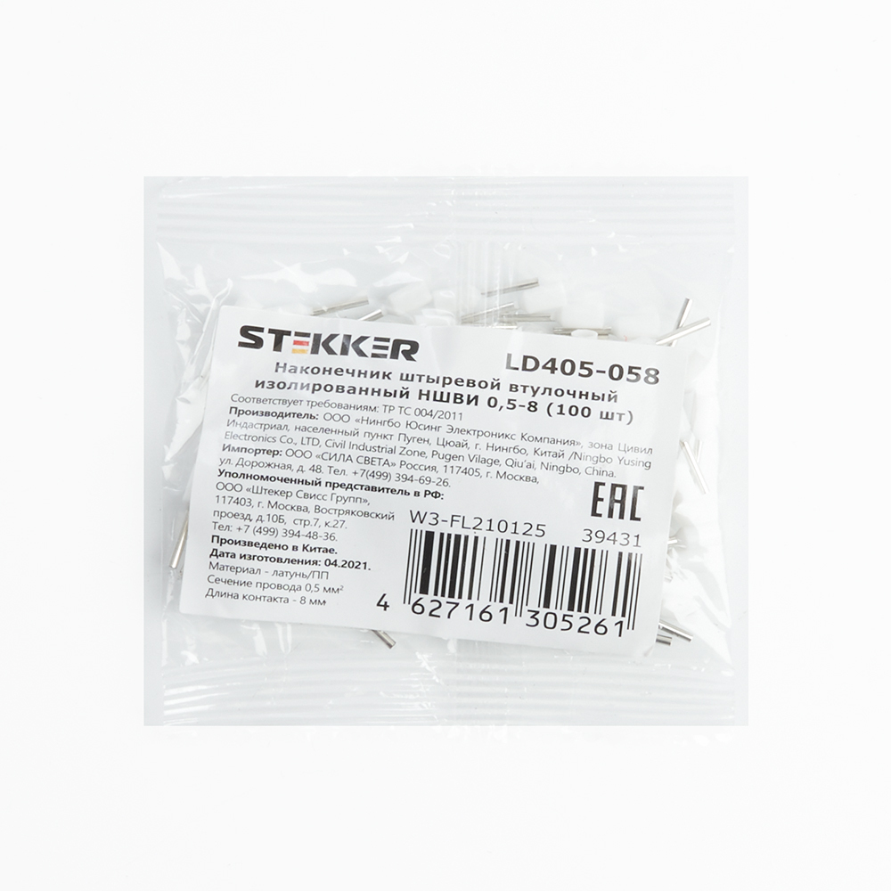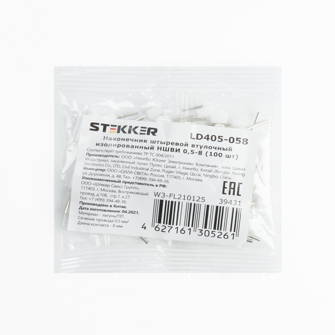 Наконечник штыревой втулочный изолированный (100шт) Stekker LD405-058 39431