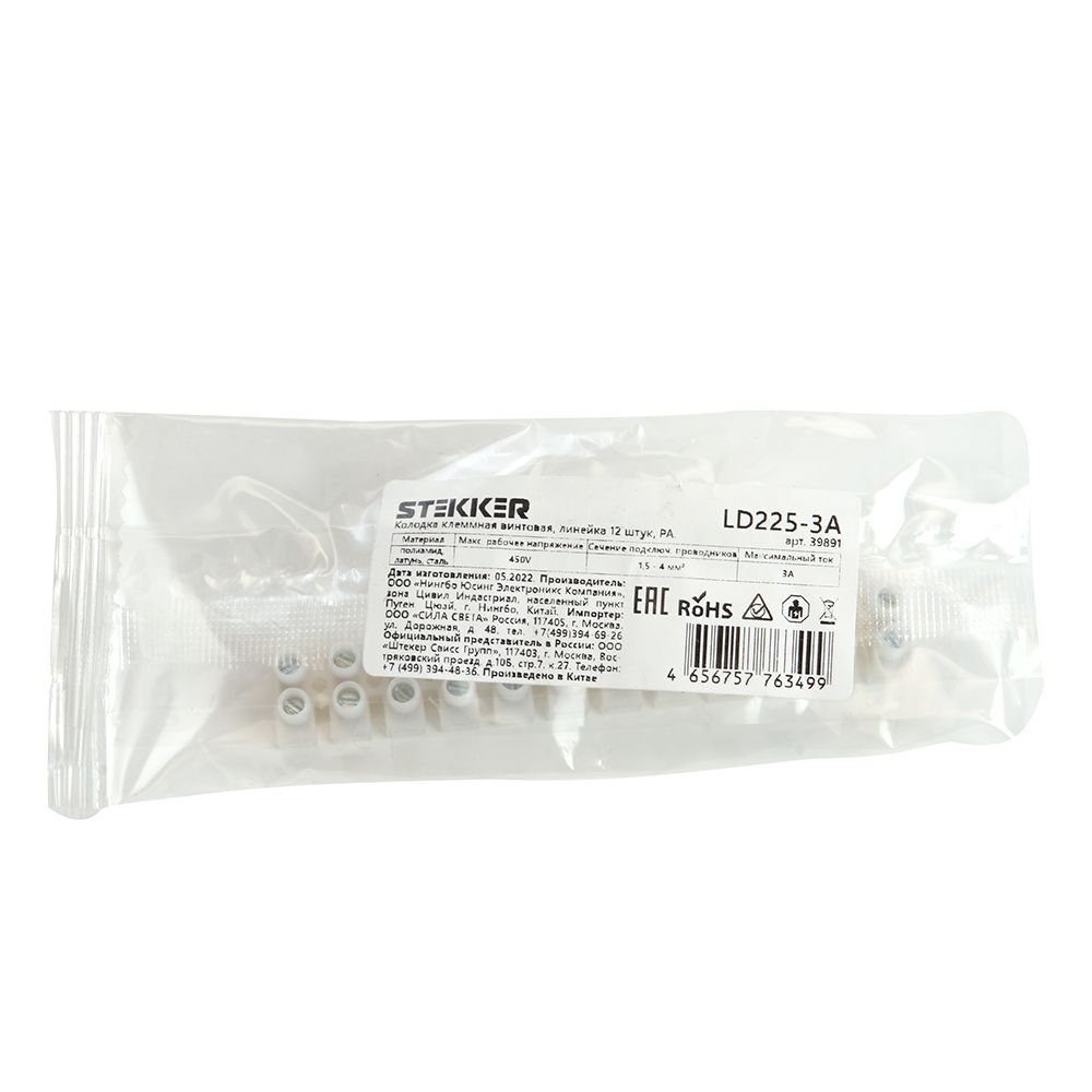 Колодка клеммная винтовая (12шт) Stekker LD225-3A 39891
