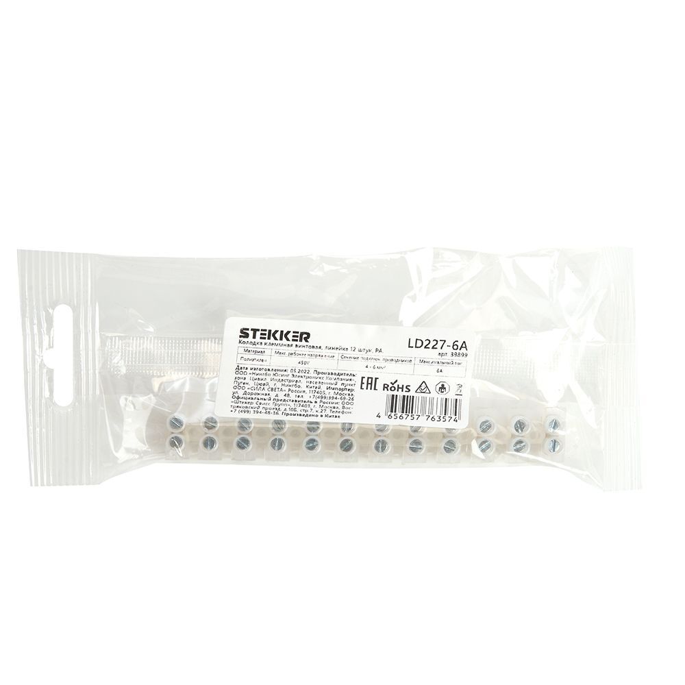 Колодка клеммная винтовая (12шт) Stekker LD227-6A 39899