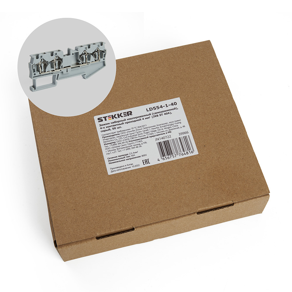 Зажим самозажимной 4-проводной проходной (50шт) Stekker LD554-1-40 39966