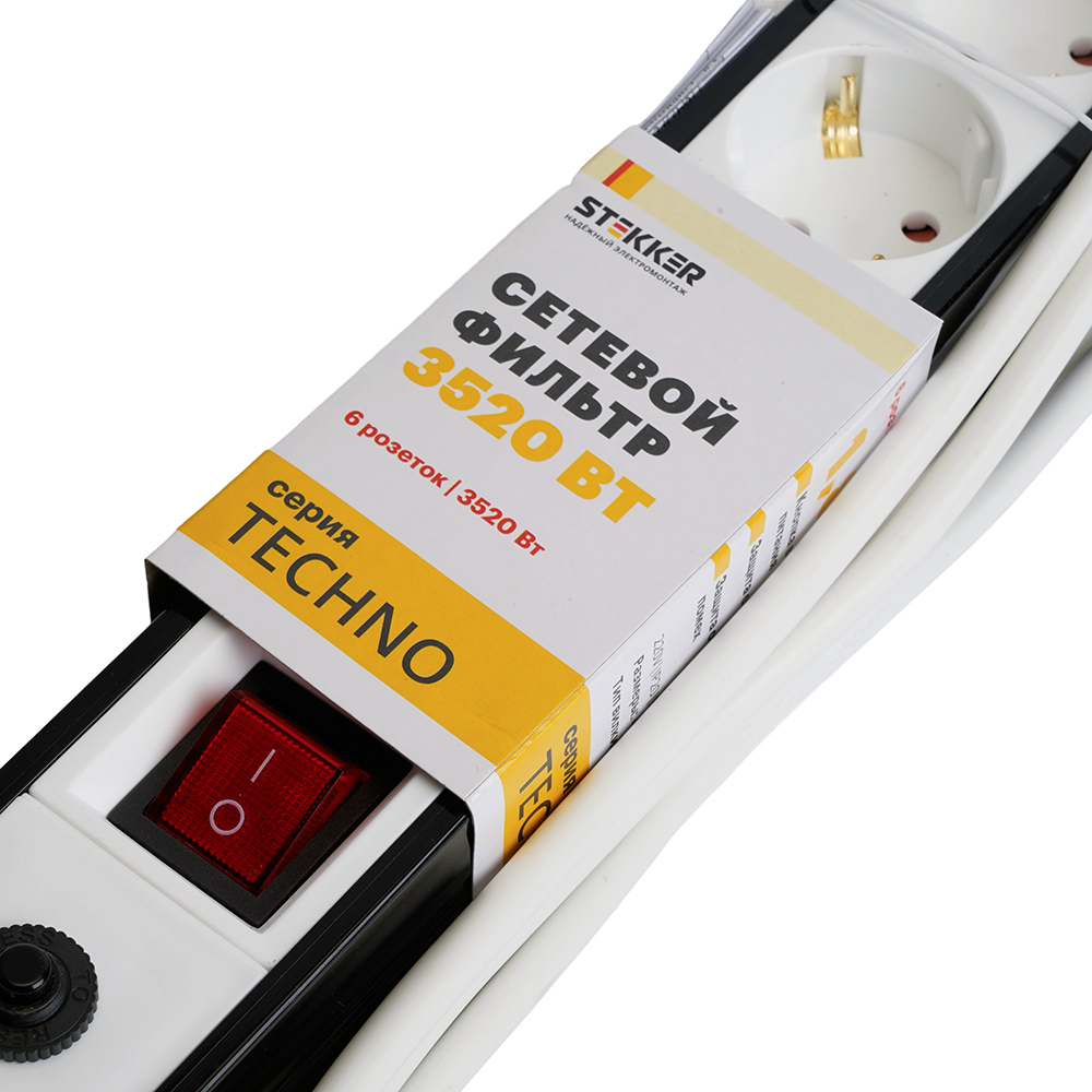 Сетевой фильтр на 6 постов Stekker TECHNO 50159