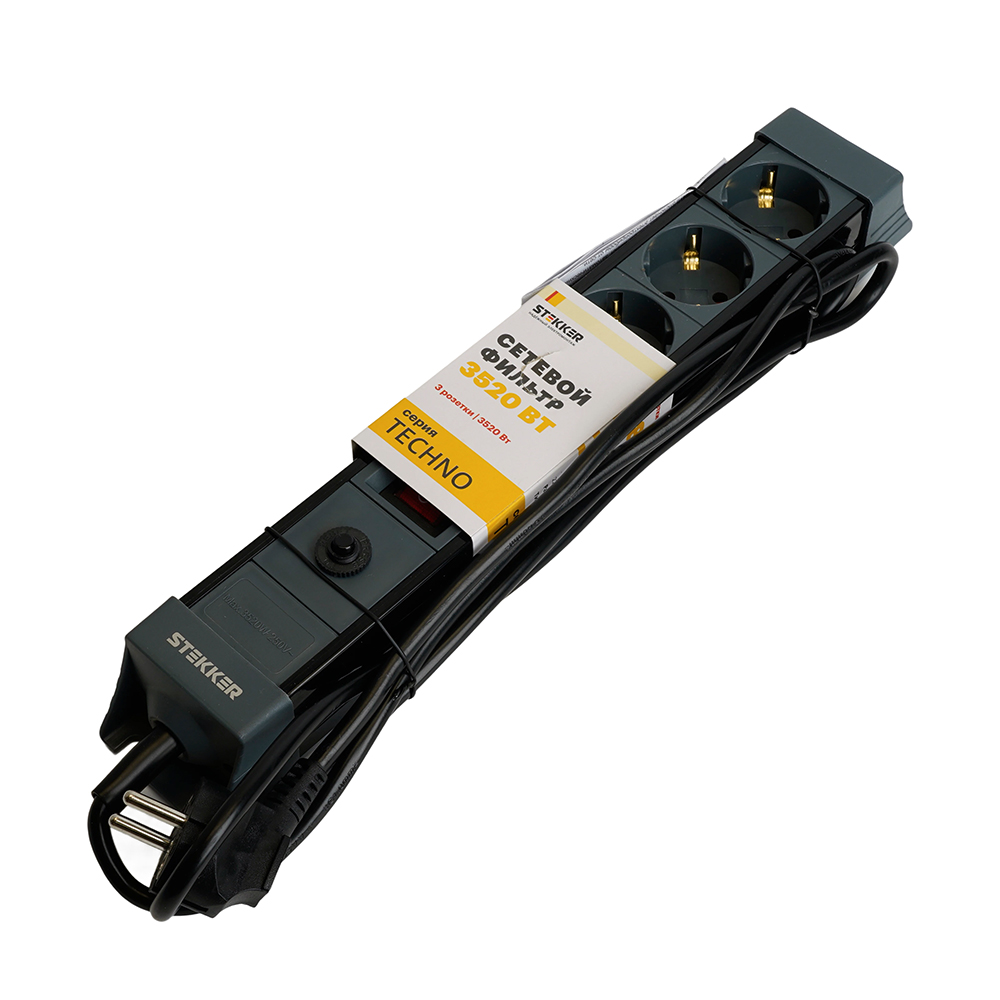 Сетевой фильтр на 3 поста Stekker TECHNO 50153
