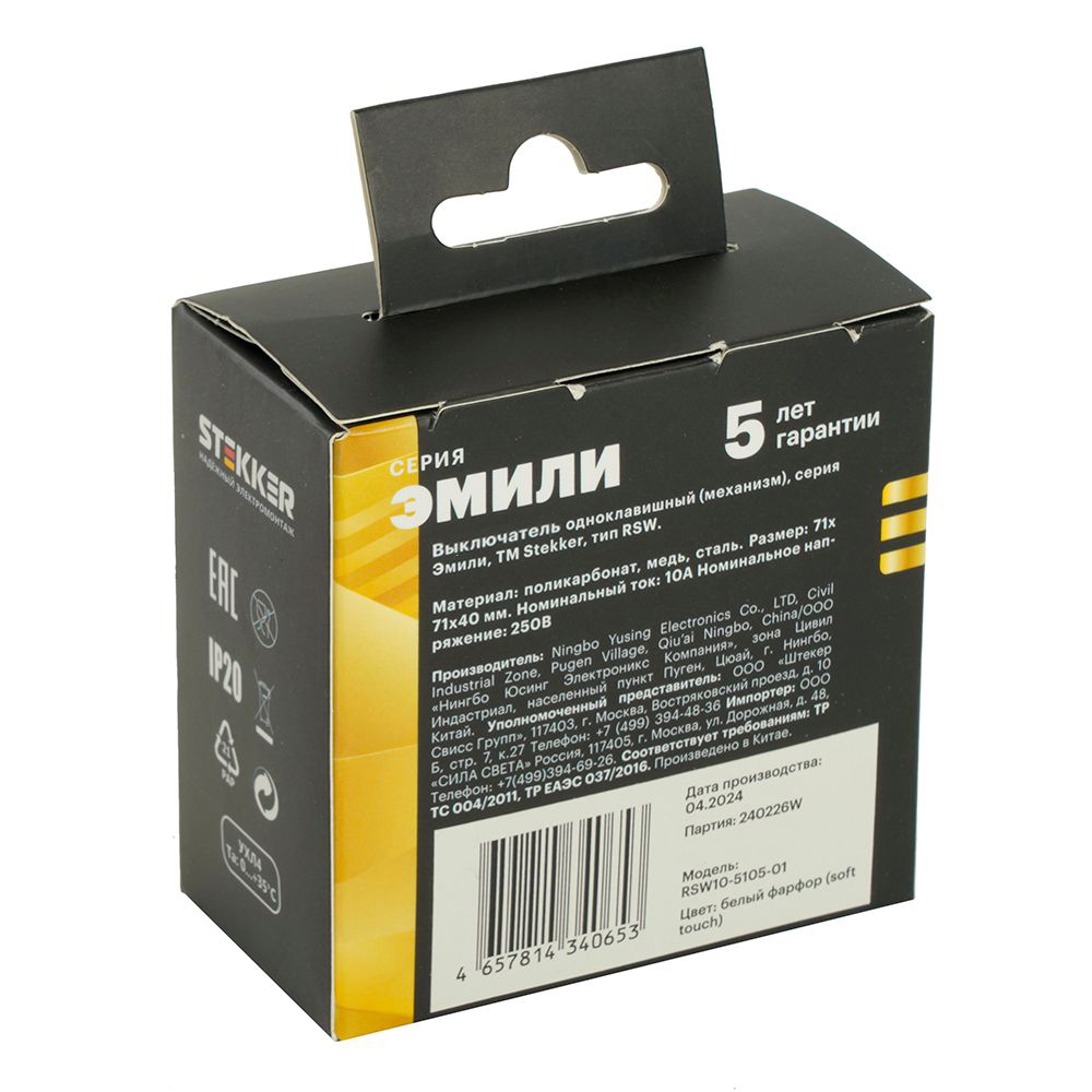Переключатель одноклавишный Stekker ЭМИЛИ 50232