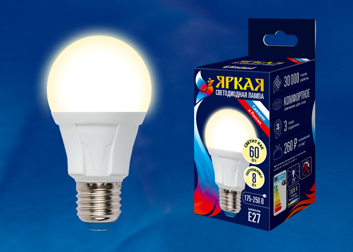 Светодиодная лампа Uniel 8W 700lm 3000K E27 UL-00001522