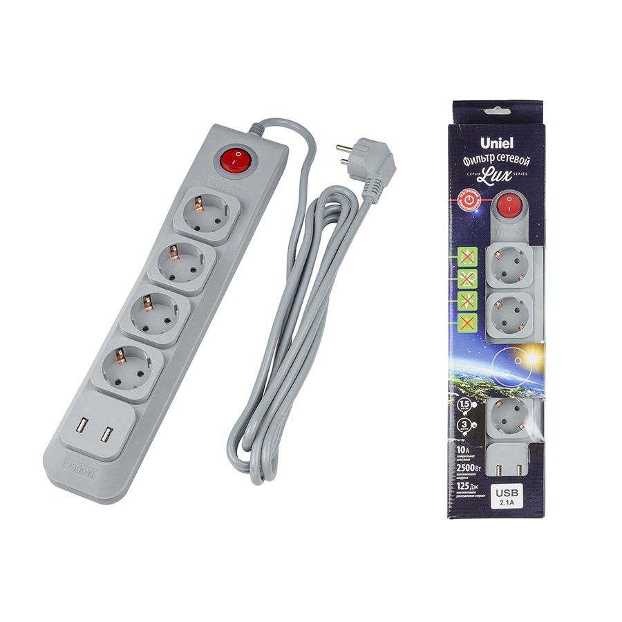 Сетевой фильтр на 4 поста + 2USB Uniel UL-00001761