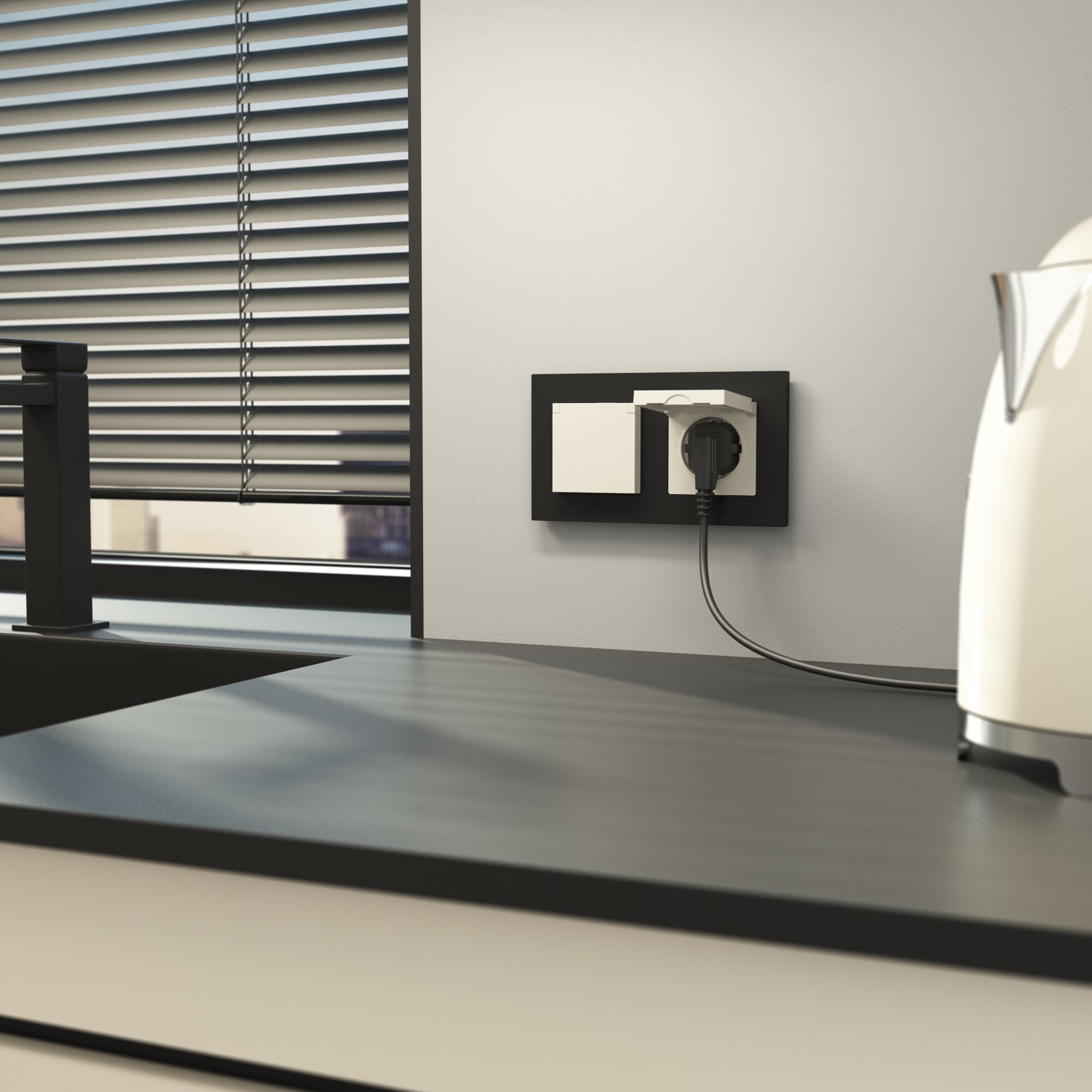 Розетка с заземлением и шторками (айвори матовый) Werkel